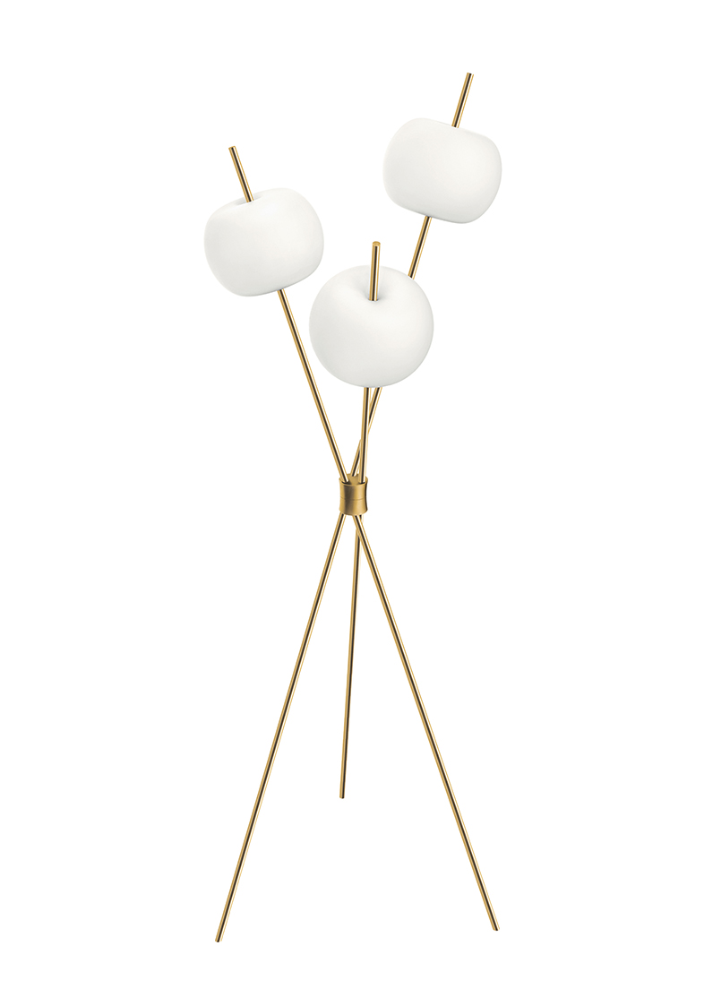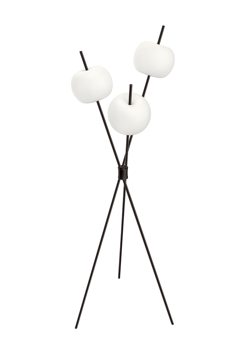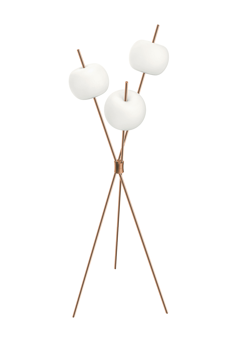 Travel, explore and get inspired. Kushi, the traditional Japanese skewer, becomes an original floor lamp. Three slim rods and three glass diffusers are intertwined. Elegant, welcoming atmospheres for the contract world and home interiors.