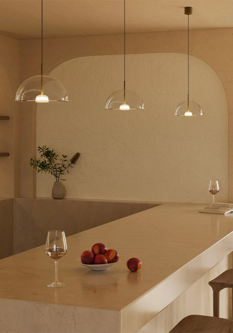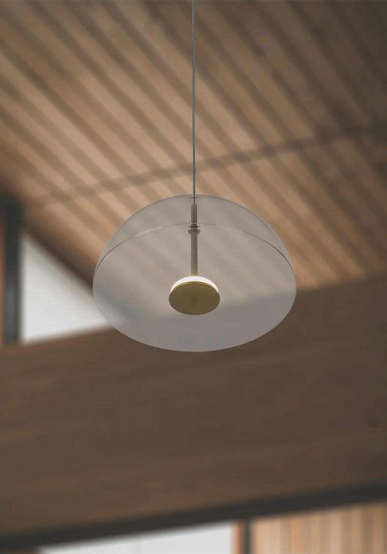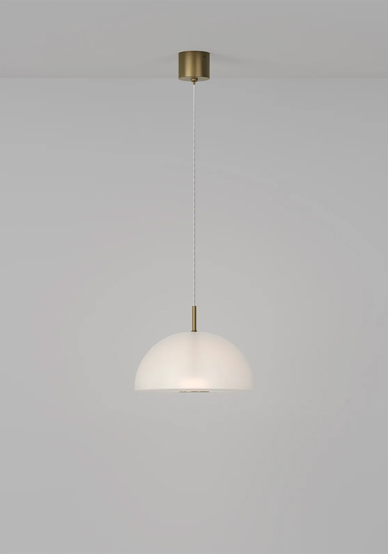 Dome Air Pendant Light by pairs a refined glass form with our sleek old brass finish, creating a modern glass pendant light with sculptural clarity.