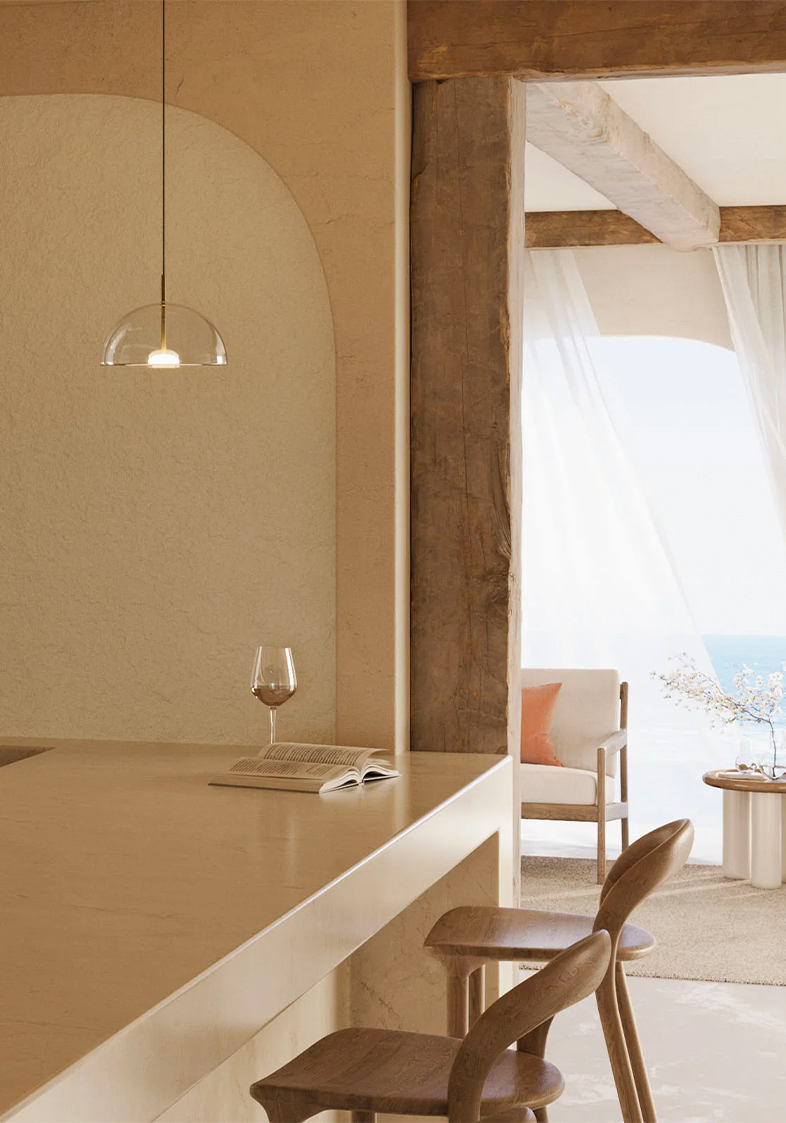 A versatile glass pendant light for contemporary interiors, it combines minimalist lighting design with timeless appeal, ideal for those seeking designer lighting that blends form, function, and craftsmanship.