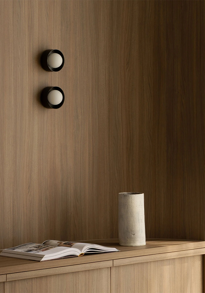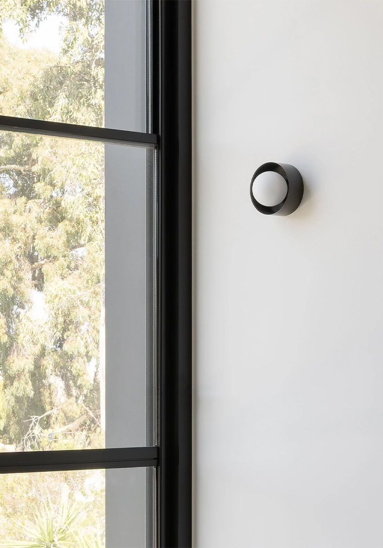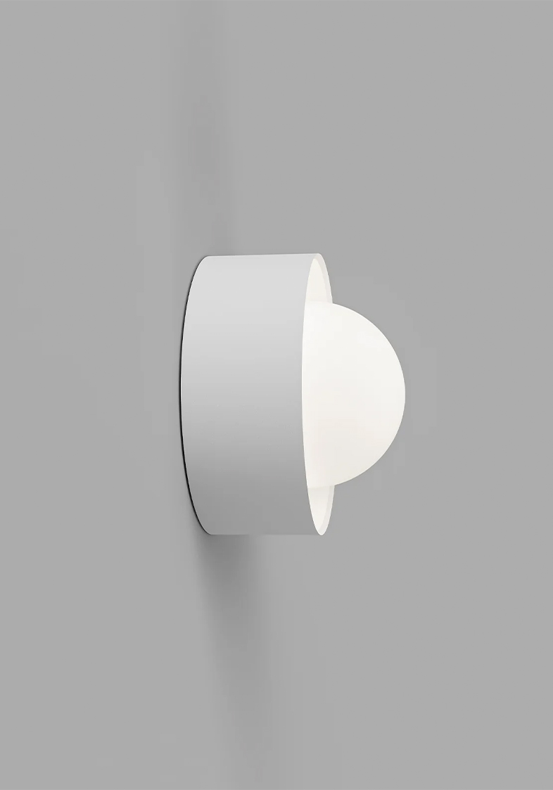 Orb Sur Wall Light takes the classic glass sphere of the Orb collection and incorporates a sleek frame, adding an extra element of depth to this most versatile wall light. The perfect sphere of opal glass emits a soft and diffused light and will sit comfortably in any interior setting.