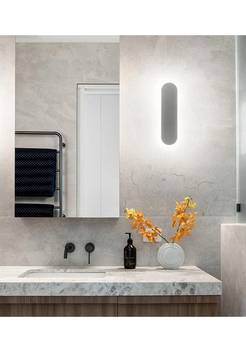Shadow Long Wall Light features a diffused light that exerts a halo-like illumination from behind the elongated flat shade to create soft and comfortable light. Shadow is the perfect way to captivate soft lighting within any space.