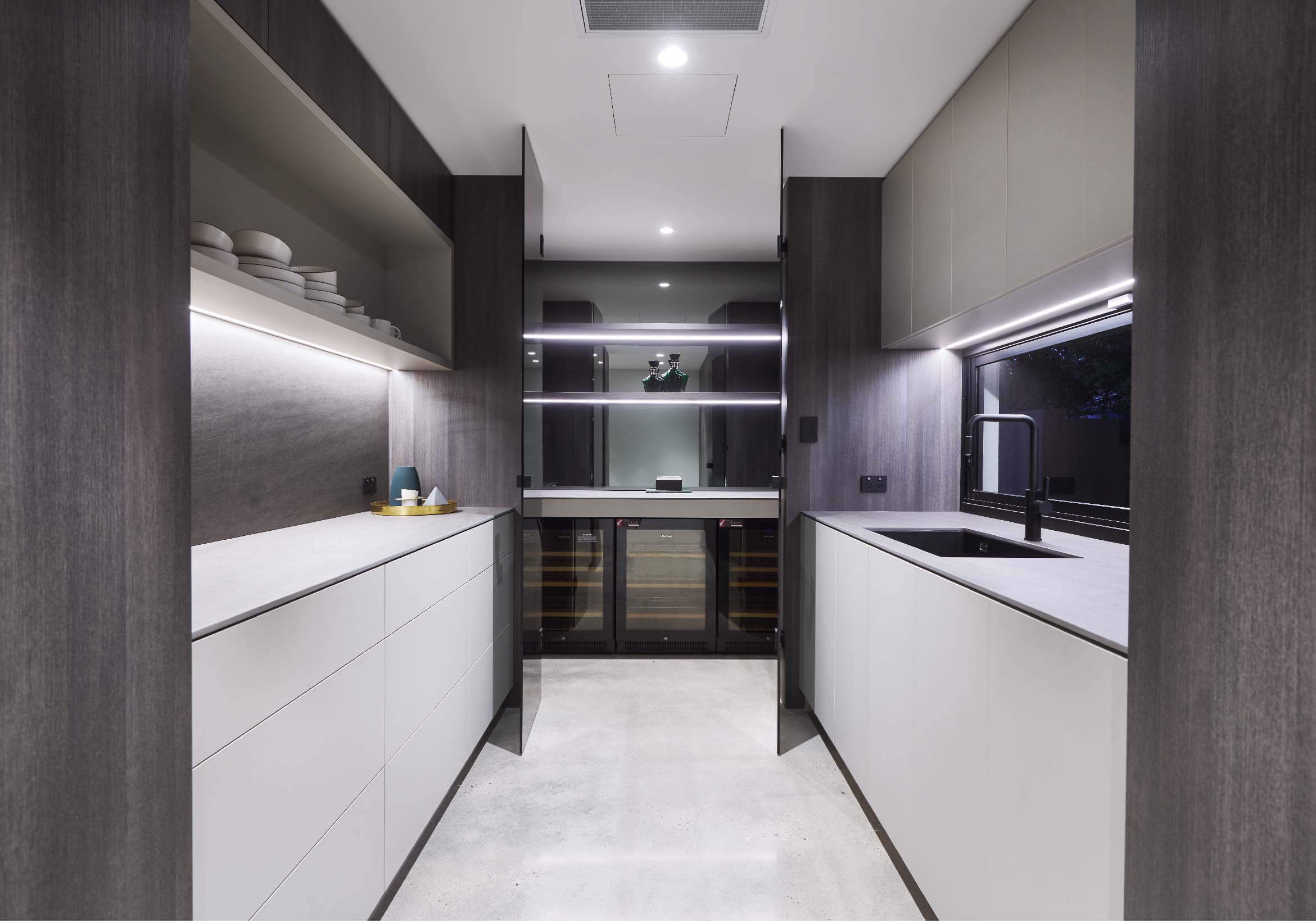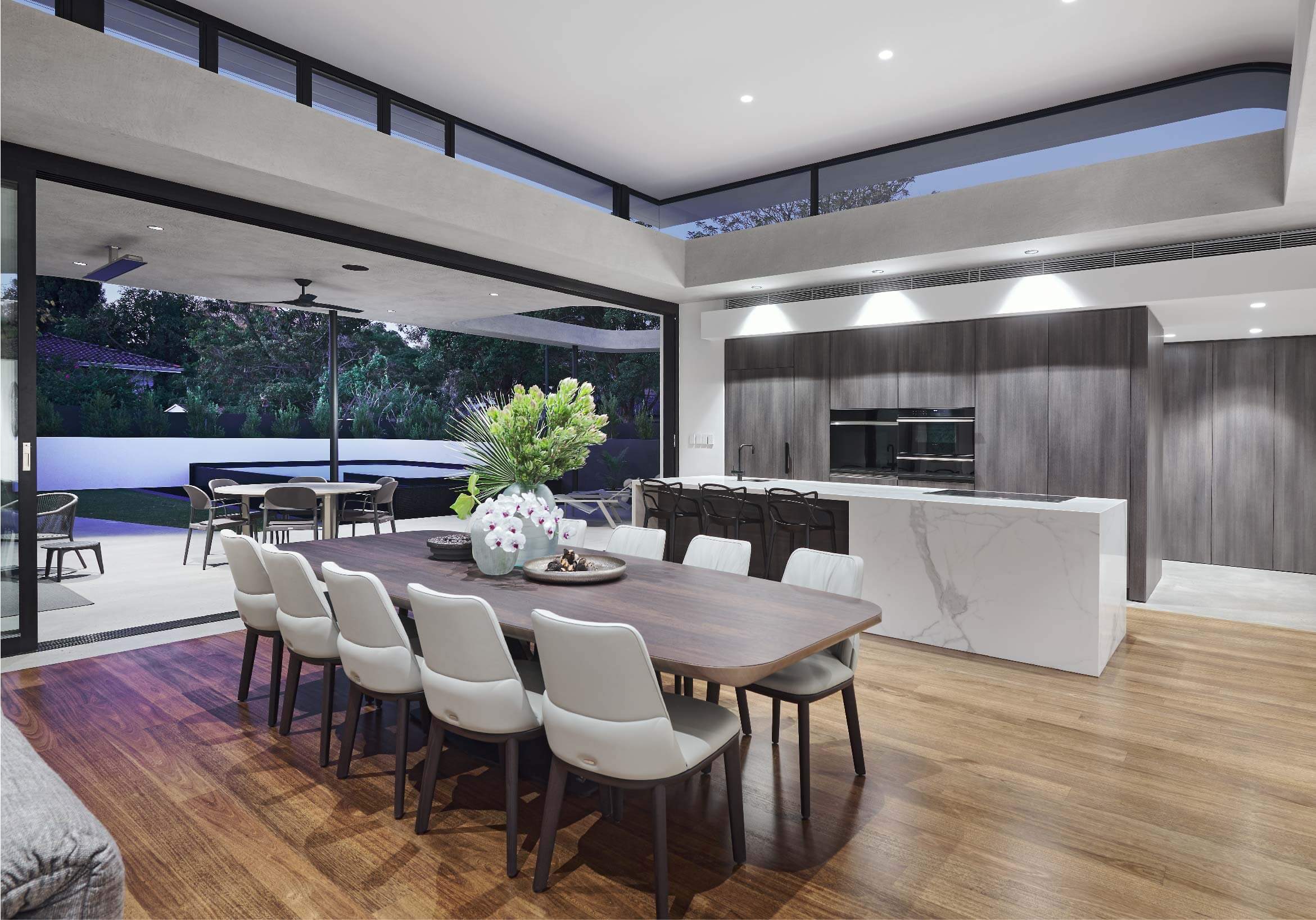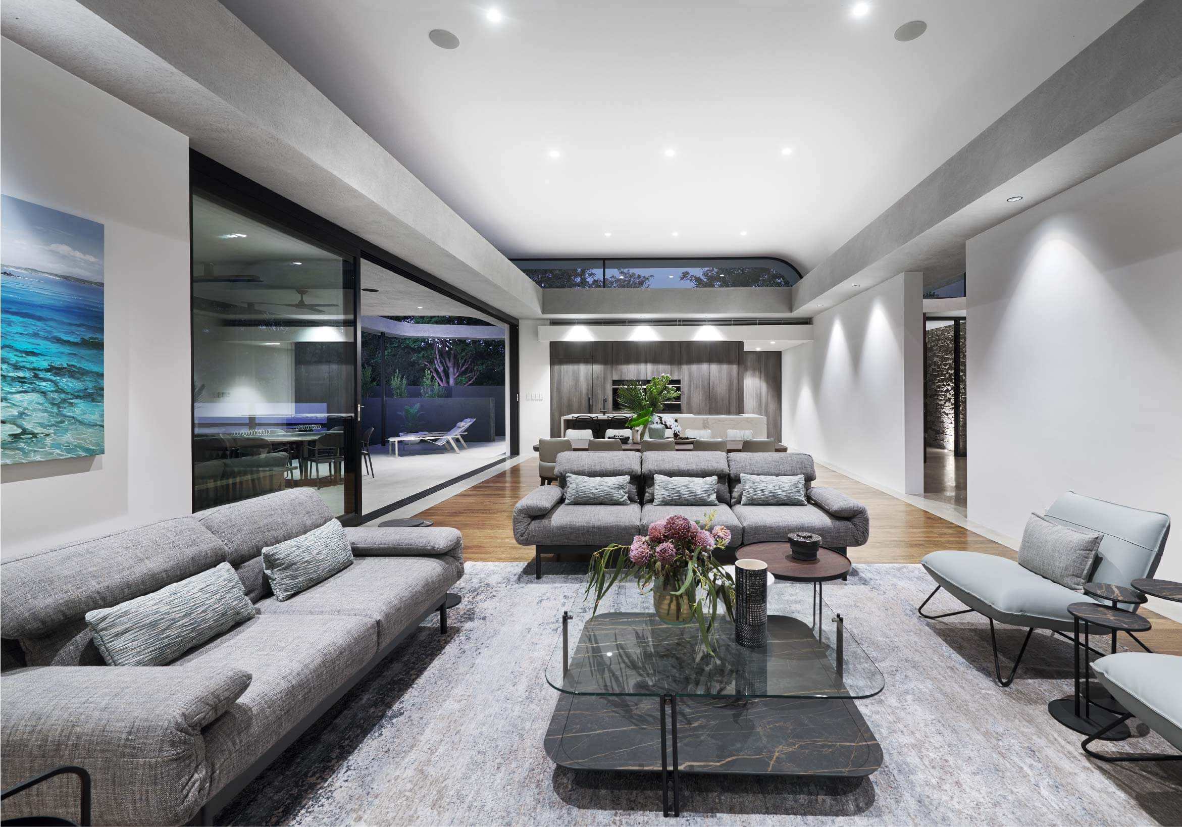 This single storey residence in Dalkeith, built by Giorgi, has a feel of refined modernist chic. The footprint generated an abundance of design opportunities for our lighting designers, such as the manipulated ceiling heights and skylights that allowed for a combination of